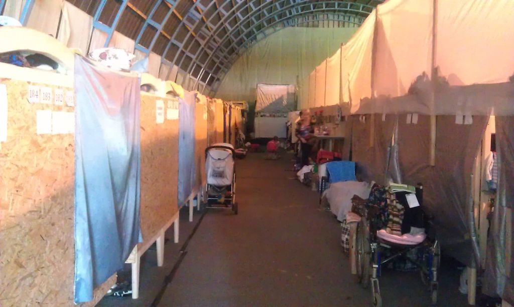 Влітку більшість людей, що прибували із зони бойових дій, розселялися в місцях компактного проживання. Вони були різні - більш-менш комфортні, без зручностей, на різну кількість людей. Але поселення біля ст.м. "Видубичі", було дуже цікавим. У центрі столиці декілька місяців у величезному промисловому ангарі проживали сотні людей, що втекли від смерті та війни. Це і дітки, і люди похилого віку, і родини з інвалідами. До цього часу багато з ким ми підтримуємо стосунки і згадуємо ангар ))). Нам є що згадати - сотні двоповерхових ліжок-нарів, чергування на вуличній кухні, польова кухня, яку так і не вдалося запустити. На момент нашого першого візиту на Видубичах проживало 215 осіб. Спільними зусиллями ми збирали продукти харчування, одяг, засоби гігієни і передавали їх людям. Пізніше брали участь у забезпеченні канцтоварами до школи, шукали житло, надавали інформаційні послуги.