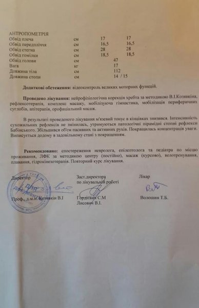 1-2 рази на рік вони їздять на реабілітацію до Трускавця (тільки там з Полінкою не відмовилися займатися через її важкий стан і постійного епістатусу). Вони пройшли вже 7 курсів, і у Полі є зміни - найголовніше, що зі спинки зійшов горбик і вирівнялася грудна клітка, дівчинка тепер краще володіє ручками, і взагалі стала якоюсь адекватнішою.